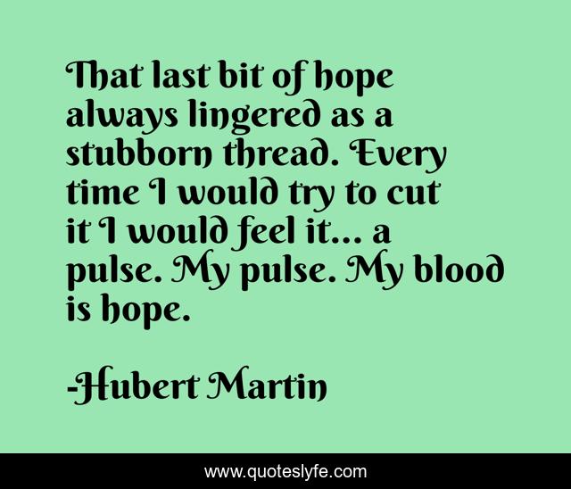 "Hubert Martin Quotes." Quoteslyfe.com, 2025. Fri. 05 Dec. 2025. <https://www.quoteslyfe.com/quote/That-last-bit-of-hope-always-lingered-54061>.
