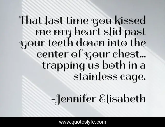 "Jennifer Elisabeth Quotes." Quoteslyfe.com, 2025. Mon. 08 Dec. 2025. <https://www.quoteslyfe.com/quote/That-last-time-you-kissed-me-my-107480>.