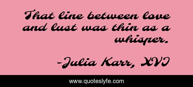 This page presents the quote "That line between love and lust was thin as a whisper.". Author of this quote is Julia Karr, XVI. This quote is about lust, love, affection,.