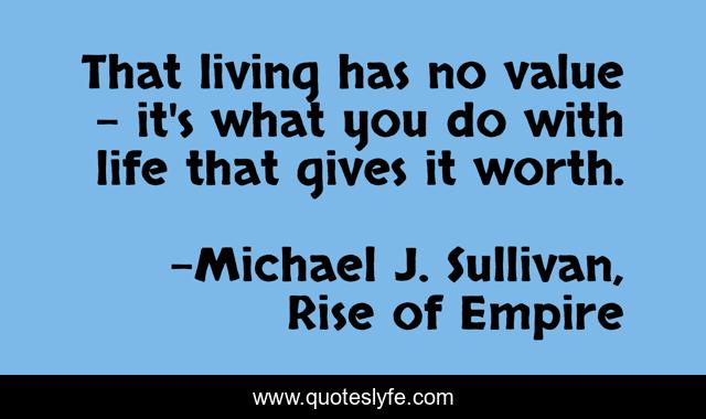 "Michael J. Sullivan, Rise of Empire Quotes." Quoteslyfe.com, 2025. Fri. 05 Dec. 2025. <https://www.quoteslyfe.com/quote/That-living-has-no-value-it-s-93599>.
