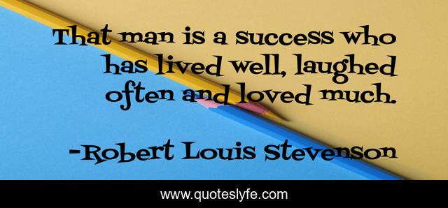This page presents the quote "That man is a success who has lived well, laughed often and loved much.". Author of this quote is Robert Louis Stevenson. This quote is about loved, well, man,.