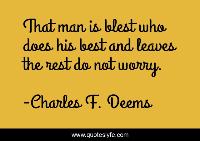 This page presents the quote "That man is blest who does his best and leaves the rest do not worry.". Author of this quote is Charles F. Deems. .