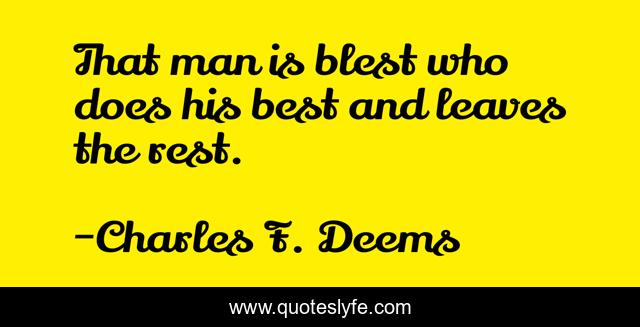 This page presents the quote "That man is blest who does his best and leaves the rest.". Author of this quote is Charles F. Deems. This quote is about day, one,.