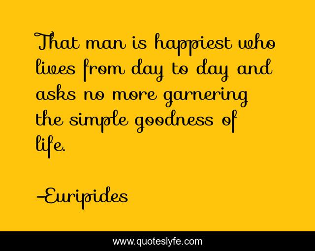 This page presents the quote "That man is happiest who lives from day to day and asks no more garnering the simple goodness of life.". Author of this quote is Euripides. This quote is about day, one,.