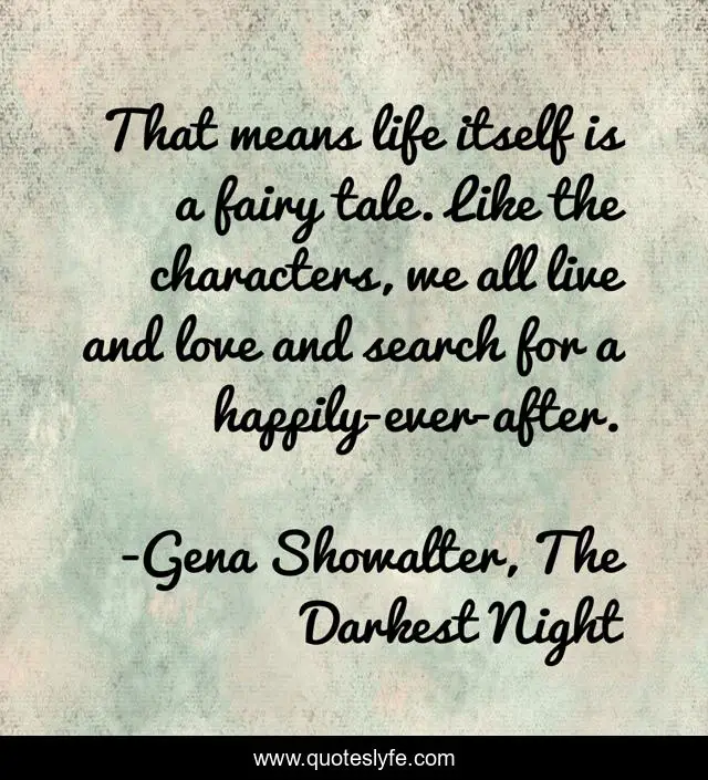 This page presents the quote "That means life itself is a fairy tale. Like the characters, we all live and love and search for a happily-ever-after.". Author of this quote is Gena Showalter, The Darkest Night. .