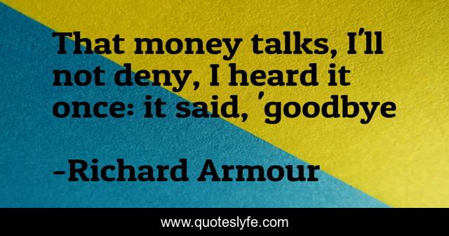 This page presents the quote "That money talks, I'll not deny, I heard it once: it said, 'goodbye". Author of this quote is Richard Armour. This quote is about money, life, humour,.