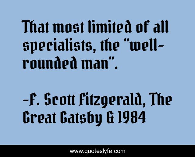 "F. Scott Fitzgerald, The Great Gatsby & 1984 Quotes." Quoteslyfe.com, 2025. Mon. 08 Dec. 2025. <https://www.quoteslyfe.com/quote/That-most-limited-of-all-specialists-the-162621>.