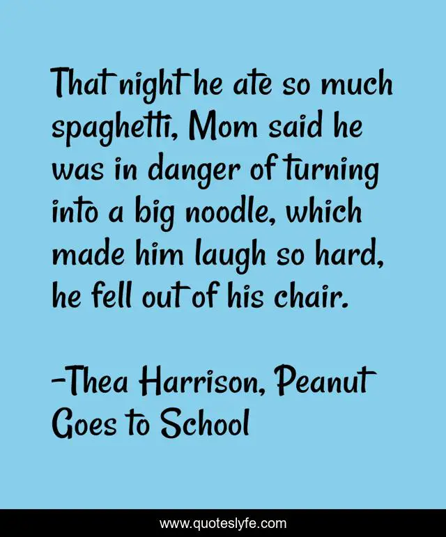 This page presents the quote "That night he ate so much spaghetti, Mom said he was in danger of turning into a big noodle, which made him laugh so hard, he fell out of his chair.". Author of this quote is Thea Harrison, Peanut Goes to School. This quote is about novella, paranormal, dragon,.
