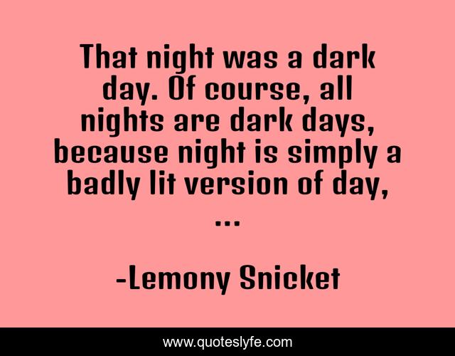 "Lemony Snicket Quotes." Quoteslyfe.com, 2025. Sat. 06 Dec. 2025. <https://www.quoteslyfe.com/quote/That-night-was-a-dark-day-Of-210332>.