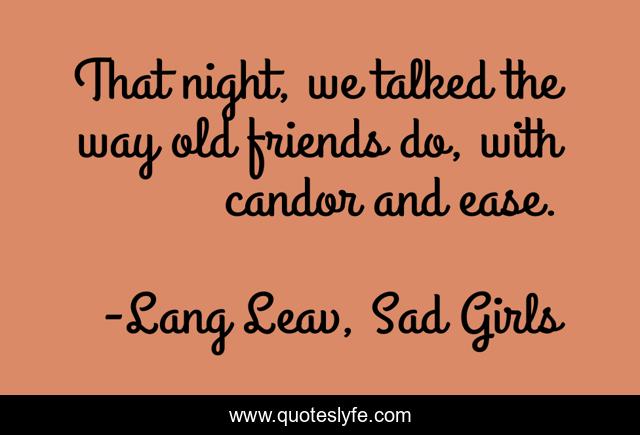 This page presents the quote "That night, we talked the way old friends do, with candor and ease.". Author of this quote is Lang Leav, Sad Girls. .