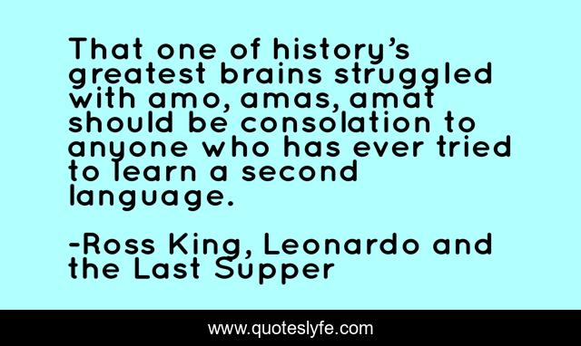 This page presents the quote "That one of history’s greatest brains struggled with amo, amas, amat should be consolation to anyone who has ever tried to learn a second language.". Author of this quote is Ross King, Leonardo and the Last Supper. This quote is about leonardo-da-vinci, language,.