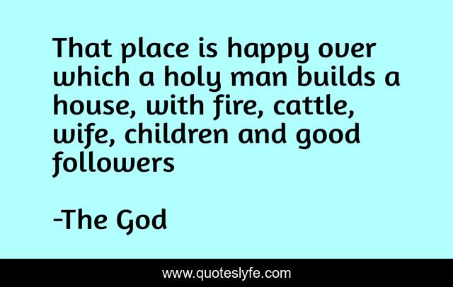 This page presents the quote "That place is happy over which a holy man builds a house, with fire, cattle, wife, children and good followers". Author of this quote is The God. This quote is about zoroastrianism, life, family, religion, marriage, happiness,.