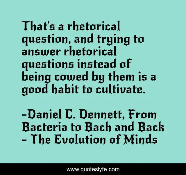"Daniel C. Dennett, From Bacteria to Bach and Back - The Evolution of Minds Quotes." Quoteslyfe.com, 2025. Fri. 05 Dec. 2025. <https://www.quoteslyfe.com/quote/That-s-a-rhetorical-question-and-trying-31080>.