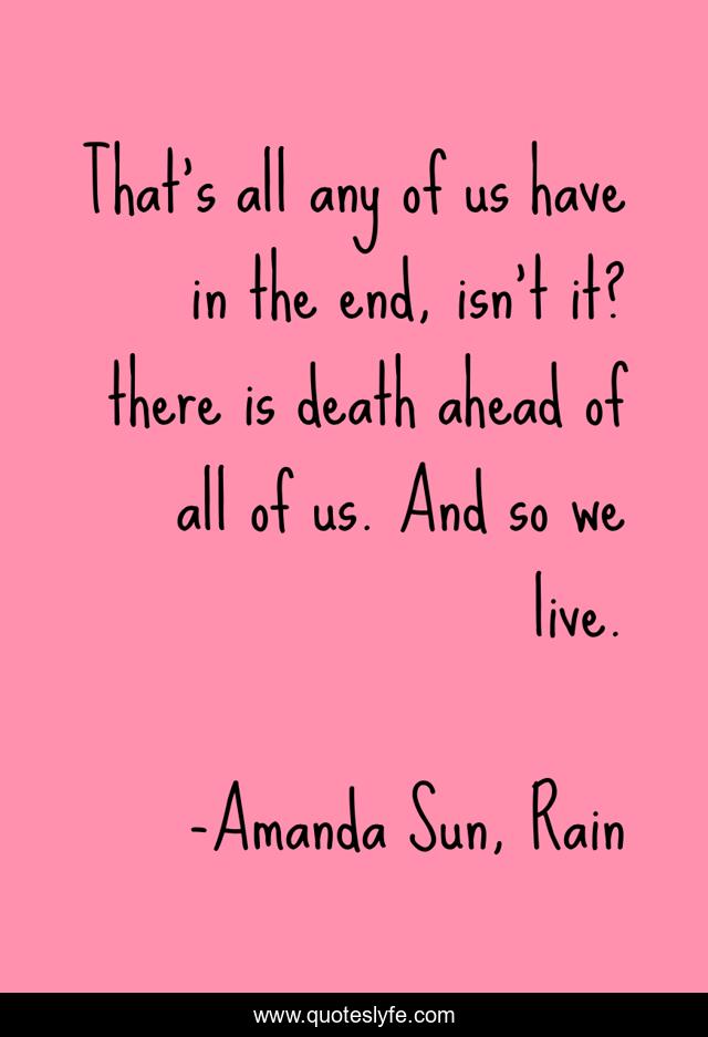 This page presents the quote "That's all any of us have in the end, isn't it? there is death ahead of all of us. And so we live.". Author of this quote is Amanda Sun, Rain. .