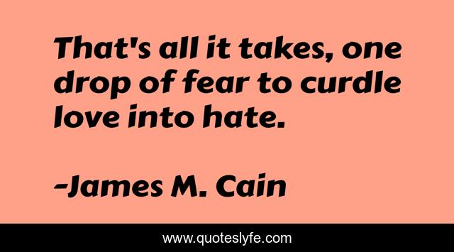 This page presents the quote "That's all it takes, one drop of fear to curdle love into hate.". Author of this quote is James M. Cain. This quote is about fear, mistakes,.