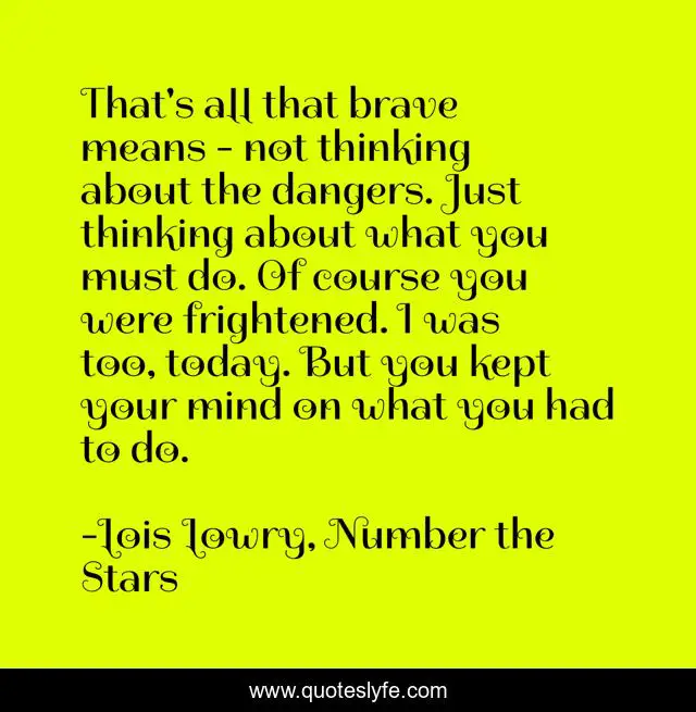 "Lois Lowry, Number the Stars Quotes." Quoteslyfe.com, 2025. Fri. 05 Dec. 2025. <https://www.quoteslyfe.com/quote/That-s-all-that-brave-means-not-45405>.