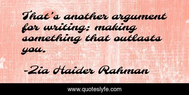 This page presents the quote "That’s another argument for writing: making something that outlasts you.". Author of this quote is Zia Haider Rahman. This quote is about authors, books, writers, writing,.