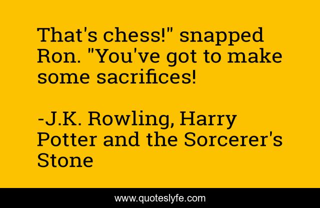 This page presents the quote "That's chess!" snapped Ron. "You've got to make some sacrifices!". Author of this quote is J.K. Rowling, Harry Potter and the Sorcerer's Stone. This quote is about enthusiasm, humor, inspirational,.