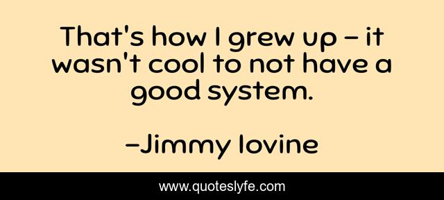 This page presents the quote "That's how I grew up - it wasn't cool to not have a good system.". Author of this quote is Jimmy Iovine. This quote is about good, up, system,.