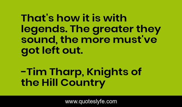 "Tim Tharp, Knights of the Hill Country Quotes." Quoteslyfe.com, 2025. Fri. 05 Dec. 2025. <https://www.quoteslyfe.com/quote/That-s-how-it-is-with-legends-10314>.