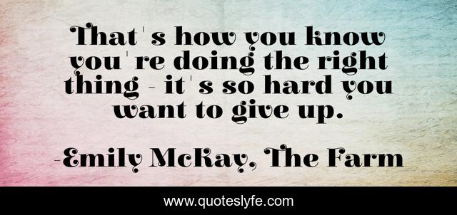 This page presents the quote "That's how you know you're doing the right thing - it's so hard you want to give up.". Author of this quote is Emily McKay, The Farm. .