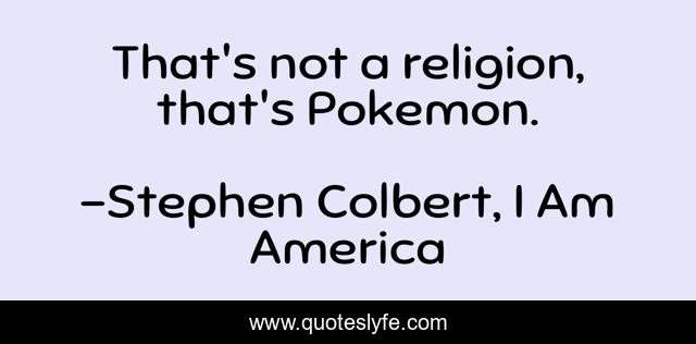 This page presents the quote "That's not a religion, that's Pokemon.". Author of this quote is Stephen Colbert, I Am America. This quote is about humor, religion, pokemon, satire,.