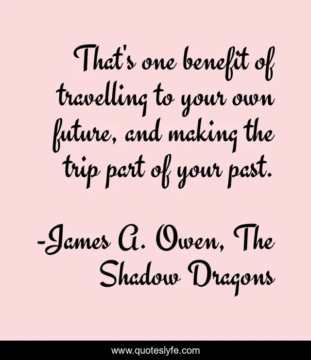"James A. Owen, The Shadow Dragons Quotes." Quoteslyfe.com, 2025. Sat. 06 Dec. 2025. <https://www.quoteslyfe.com/quote/That-s-one-benefit-of-travelling-to-110663>.