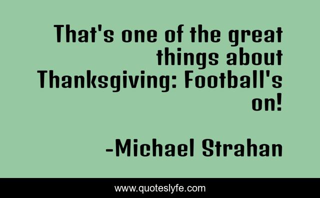 This page presents the quote "That's one of the great things about Thanksgiving: Football's on!". Author of this quote is Michael Strahan. This quote is about great, football,.