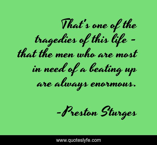 This page presents the quote "That's one of the tragedies of this life - that the men who are most in need of a beating up are always enormous.". Author of this quote is Preston Sturges. .