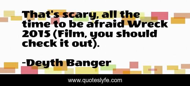 This page presents the quote "That's scary, all the time to be afraid Wreck 2015 (Film, you should check it out).". Author of this quote is Deyth Banger. This quote is about afraid, wreck, horror, time, comedy, scared, film,.