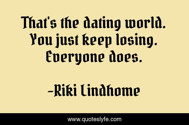 This page presents the quote "That's the dating world. You just keep losing. Everyone does.". Author of this quote is Riki Lindhome. This quote is about losing, world,.