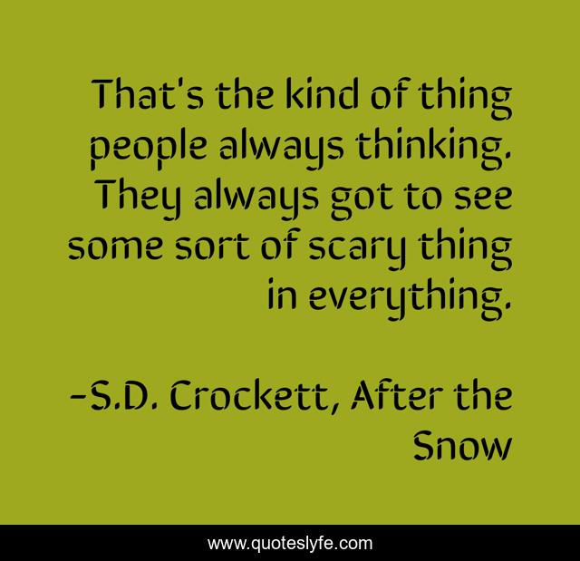 This page presents the quote "That's the kind of thing people always thinking. They always got to see some sort of scary thing in everything.". Author of this quote is S.D. Crockett, After the Snow. .