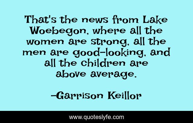 "Garrison Keillor Quotes." Quoteslyfe.com, 2025. Fri. 05 Dec. 2025. <https://www.quoteslyfe.com/quote/That-s-the-news-from-Lake-Woebegon-166823>.