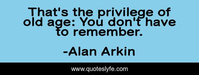 This page presents the quote "That's the privilege of old age: You don't have to remember.". Author of this quote is Alan Arkin. This quote is about old age, remember,.