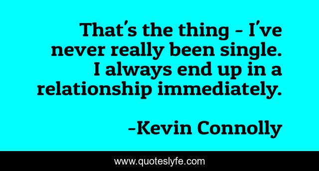 This page presents the quote "That's the thing - I've never really been single. I always end up in a relationship immediately.". Author of this quote is Kevin Connolly. This quote is about single, end,.