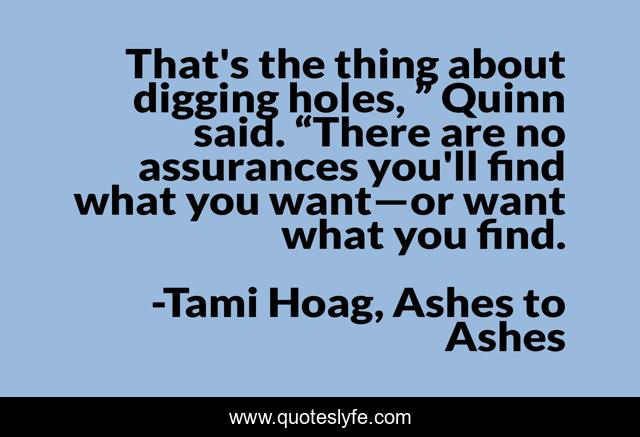 "Tami Hoag, Ashes to Ashes Quotes." Quoteslyfe.com, 2025. Fri. 05 Dec. 2025. <https://www.quoteslyfe.com/quote/That-s-the-thing-about-digging-holes-200600>.