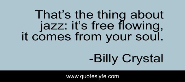 This page presents the quote "That’s the thing about jazz: it’s free flowing, it comes from your soul.". Author of this quote is Billy Crystal. This quote is about jazz, music,.