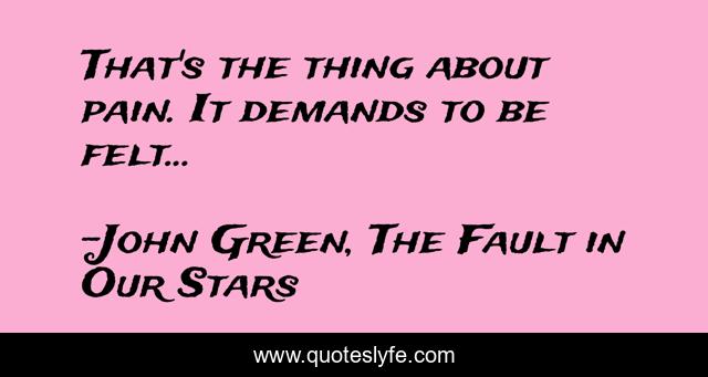 "John Green, The Fault in Our Stars Quotes." Quoteslyfe.com, 2025. Fri. 05 Dec. 2025. <https://www.quoteslyfe.com/quote/That-s-the-thing-about-pain-It-75552>.