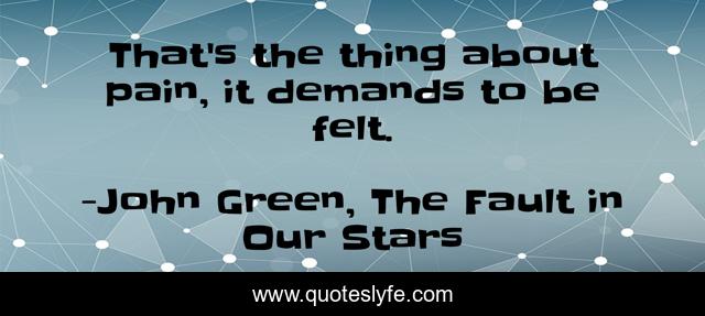 "John Green, The Fault in Our Stars Quotes." Quoteslyfe.com, 2025. Mon. 08 Dec. 2025. <https://www.quoteslyfe.com/quote/That-s-the-thing-about-pain-it-221156>.