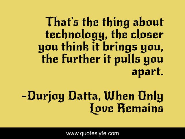 "Durjoy Datta, When Only Love Remains Quotes." Quoteslyfe.com, 2025. Sat. 06 Dec. 2025. <https://www.quoteslyfe.com/quote/That-s-the-thing-about-technology-the-196566>.