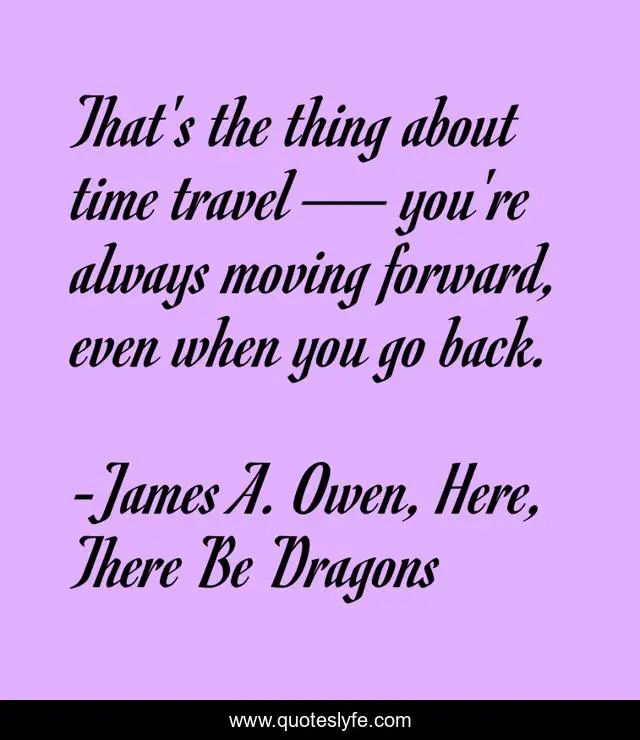 This page presents the quote "That's the thing about time travel — you're always moving forward, even when you go back.". Author of this quote is James A. Owen, Here, There Be Dragons. .