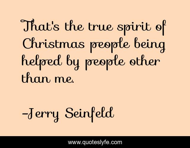 This page presents the quote "That's the true spirit of Christmas people being helped by people other than me.". Author of this quote is Jerry Seinfeld. This quote is about me, true, people,.