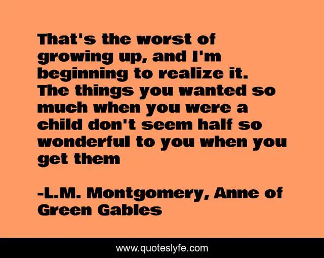 "L.M. Montgomery, Anne of Green Gables Quotes." Quoteslyfe.com, 2025. Fri. 05 Dec. 2025. <https://www.quoteslyfe.com/quote/That-s-the-worst-of-growing-up-203603>.