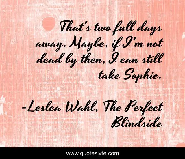 "Leslea Wahl, The Perfect Blindside Quotes." Quoteslyfe.com, 2025. Mon. 08 Dec. 2025. <https://www.quoteslyfe.com/quote/That-s-two-full-days-away-Maybe-231053>.