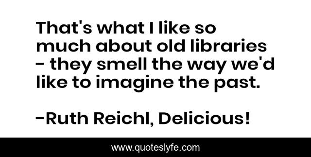 This page presents the quote "That's what I like so much about old libraries - they smell the way we'd like to imagine the past.". Author of this quote is Ruth Reichl, Delicious!. This quote is about libraries, past,.
