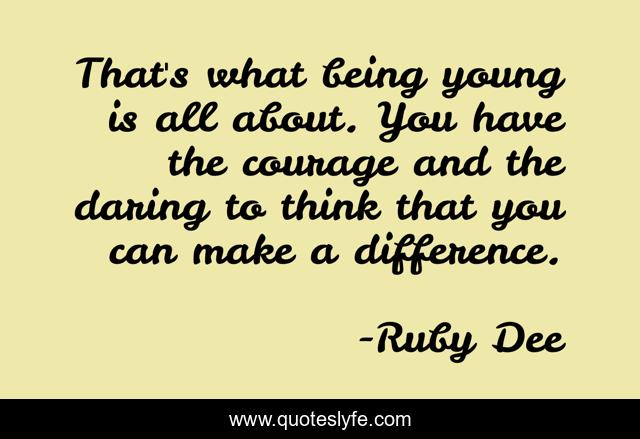 This page presents the quote "That's what being young is all about. You have the courage and the daring to think that you can make a difference.". Author of this quote is Ruby Dee. .