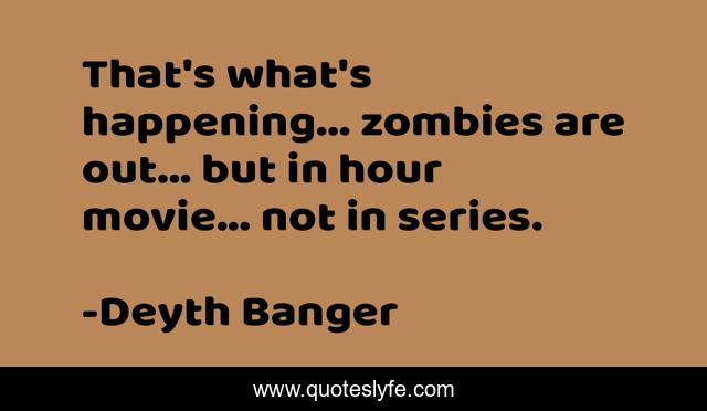 This page presents the quote "That's what's happening... zombies are out... but in hour movie... not in series.". Author of this quote is Deyth Banger. This quote is about series, but, zombies, in,.
