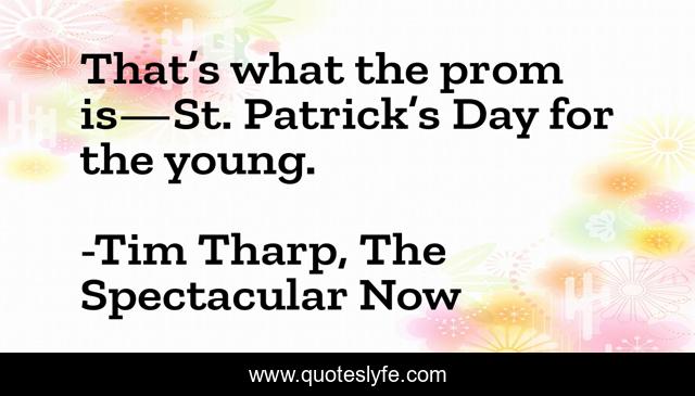 This page presents the quote "That’s what the prom is—St. Patrick’s Day for the young.". Author of this quote is Tim Tharp, The Spectacular Now. .