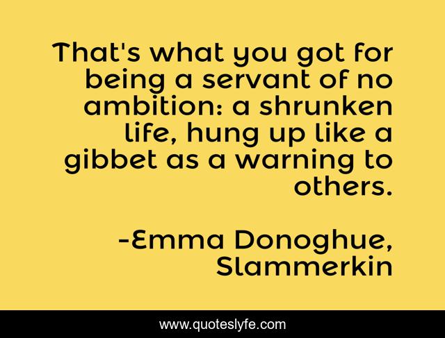This page presents the quote "That's what you got for being a servant of no ambition: a shrunken life, hung up like a gibbet as a warning to others.". Author of this quote is Emma Donoghue, Slammerkin. This quote is about servant, ambition,.