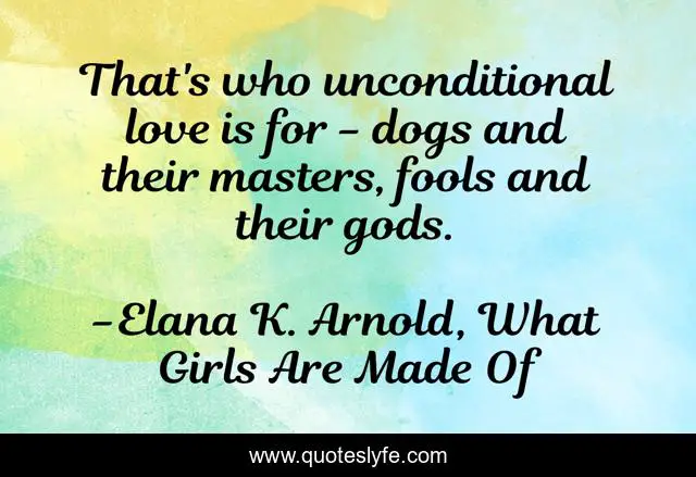 This page presents the quote "That's who unconditional love is for - dogs and their masters, fools and their gods.". Author of this quote is Elana K. Arnold, What Girls Are Made Of. This quote is about girls, love, affection,.